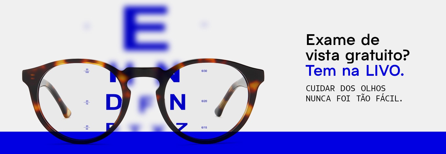 Na LIVO, cuidar da sua visão é prioridade. Aproveite o exame de vista gratuito com nosso especialista óptico e garanta mais clareza, saúde e bem-estar no seu olhar.