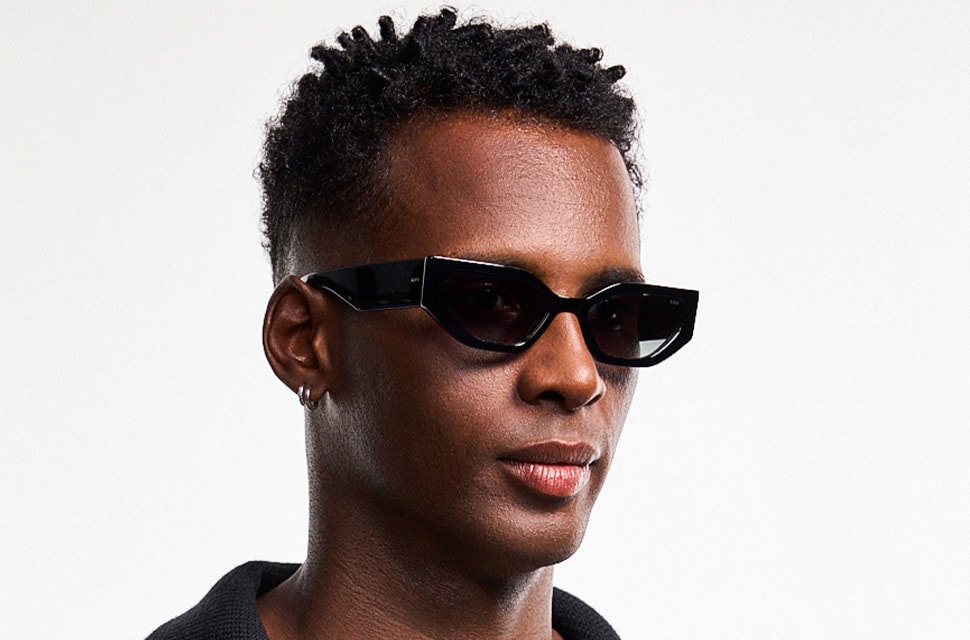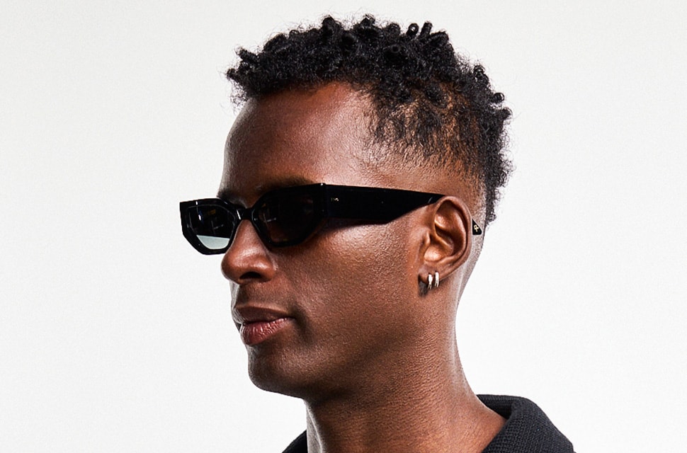 O acabamento brilhante acentua as facetas geométricas da armação, deixando o shape falar por si com linhas dramáticas. Com lentes escuras, é a escolha definitiva para um visual underground de luxo.